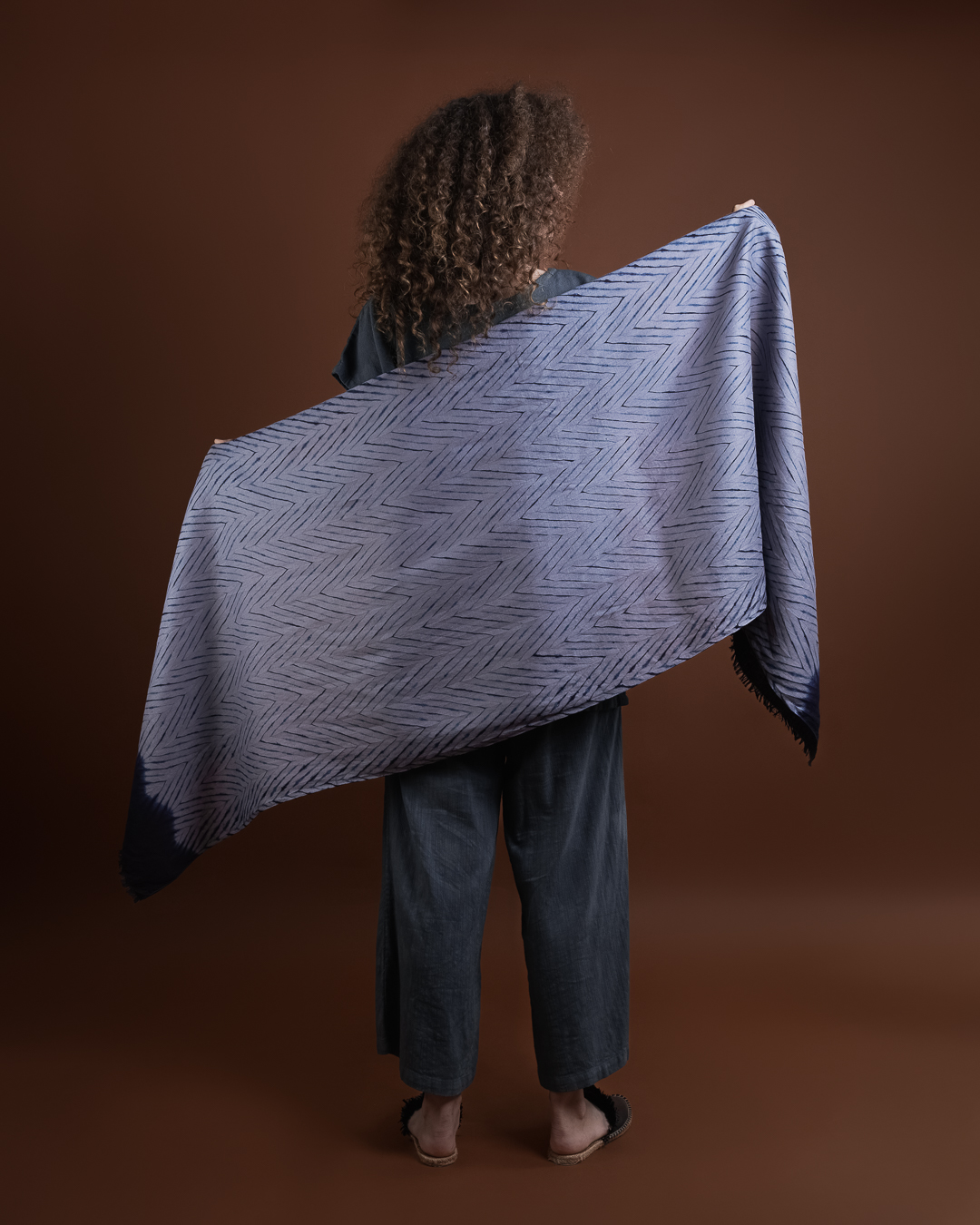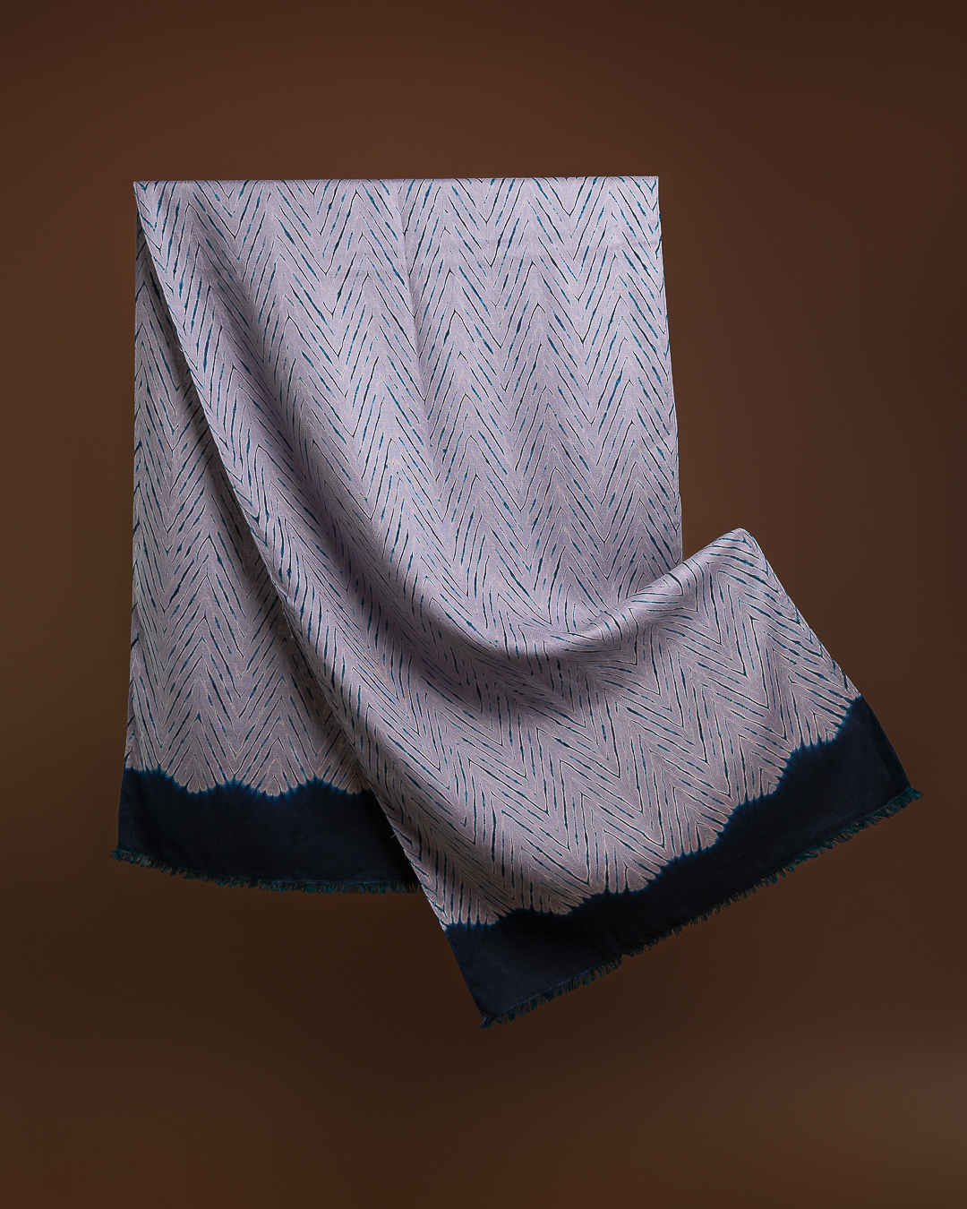 Shibori patterns are distinguished by soft, blurred edges, nuanced details, and subtle shade gradations. The uniqueness of these pieces lies in their countless minute variations. While the designs may initially appear structured, a closer look reveals the presence of human touch in every detail.