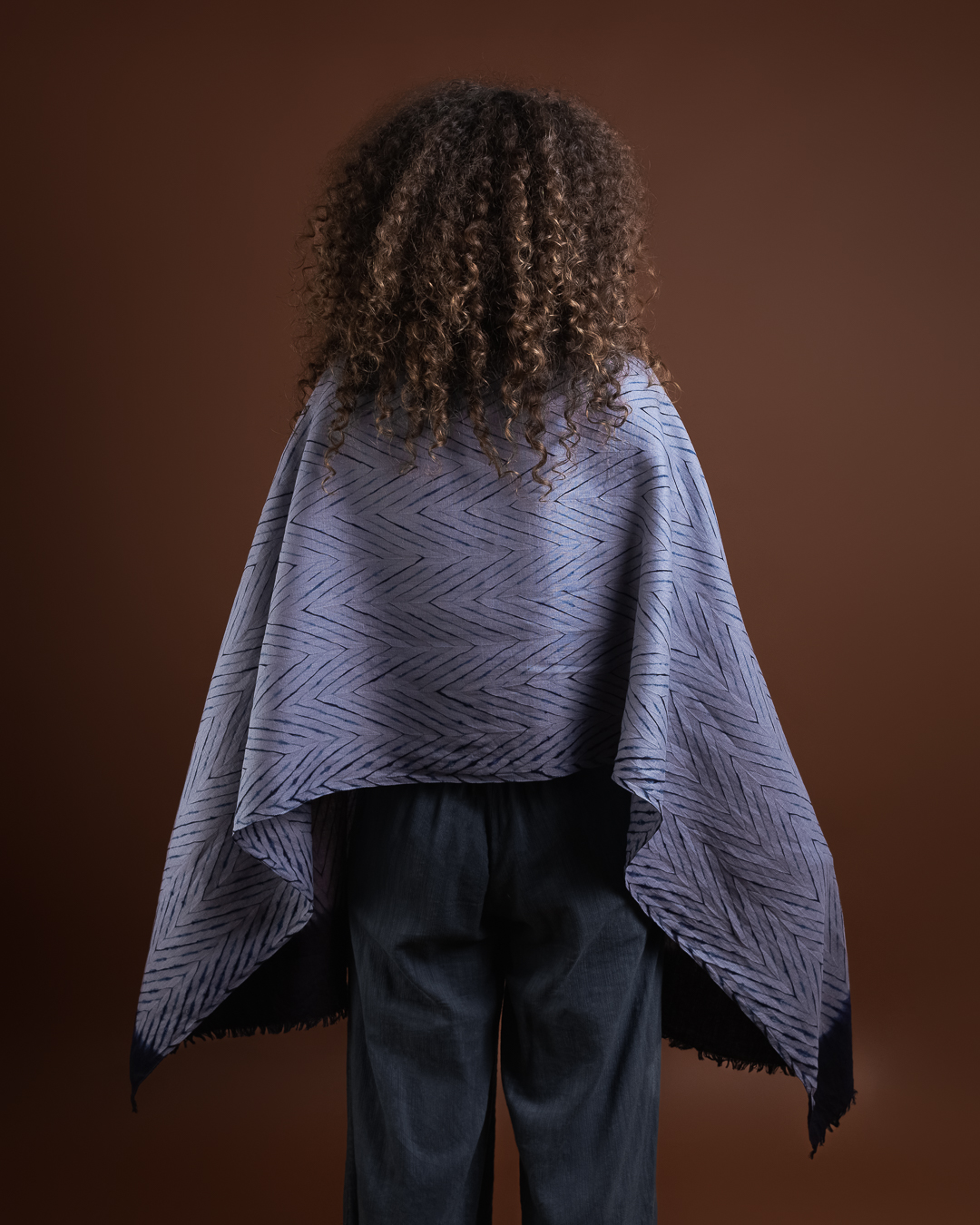 The process begins with drawing on the fabric to envision and plan out the design, followed by stitching, compressing and binding the fabric. Stitching and tying hundreds of threads by hand makes this an especially time intensive process which can take up to an entire week. In this phase, the fabric is intricately manipulated to create resist areas where the dye is unable to fully penetrate. The fabric is then immersed into indigo and/or non-toxic dyes which penetrates exposed areas while the bound sections resist, resulting in distinctive patterns.