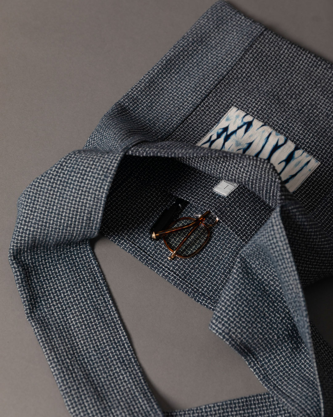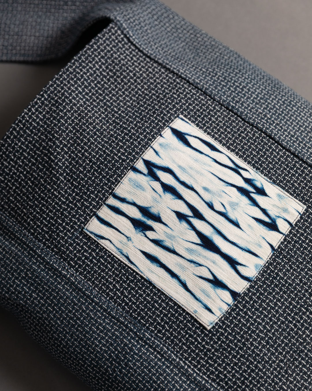 This piece showcases the intricate artistry of shibori, an ancient Japanese dyeing technique that involves manipulating and compressing cloth similar to tie-dye.