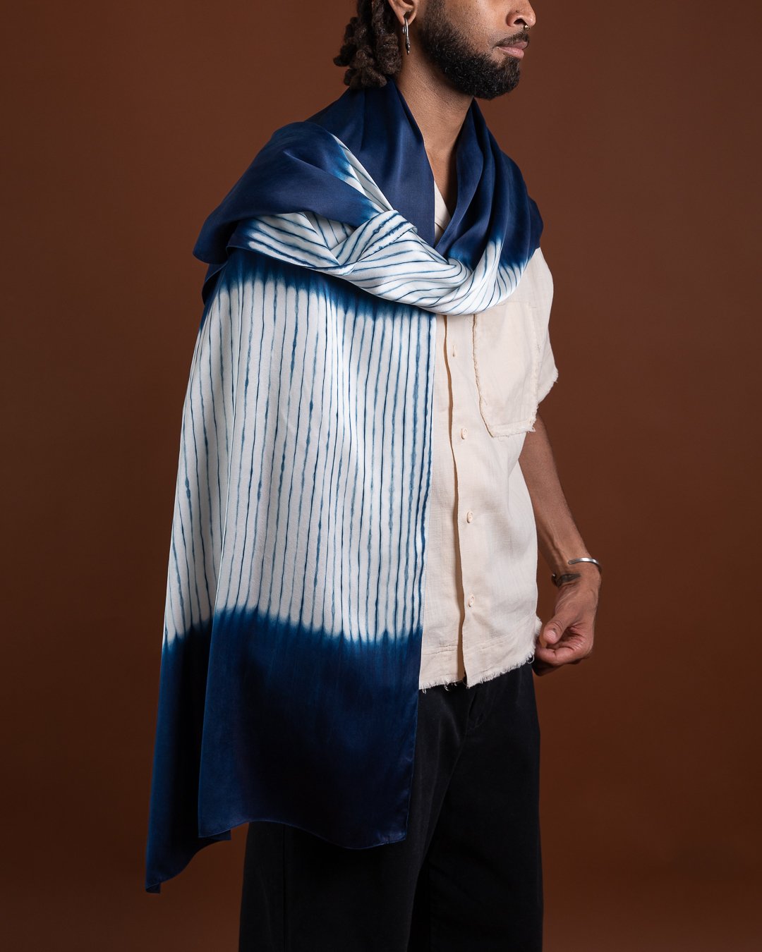 Shibori patterns are distinguished by soft, blurred edges, nuanced details, and subtle shade gradations. The uniqueness of these pieces lies in their countless minute variations. While the designs may initially appear structured, a closer look reveals the presence of human touch in every detail.