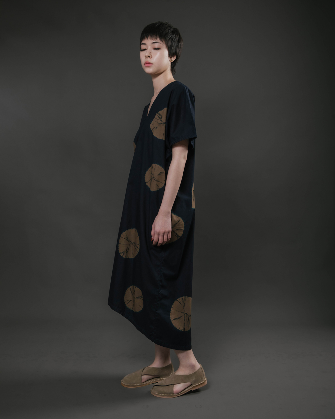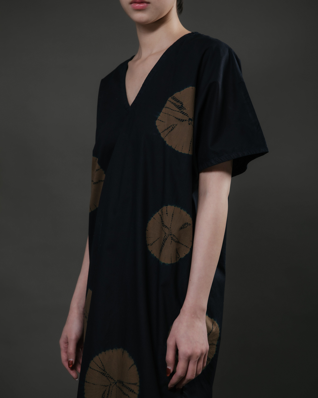 Shibori patterns are distinguished by soft, blurred edges, nuanced details, and subtle shade gradations. The uniqueness of these pieces lies in their countless minute variations. While the designs may initially appear structured, a closer look reveals the presence of human touch in every detail.