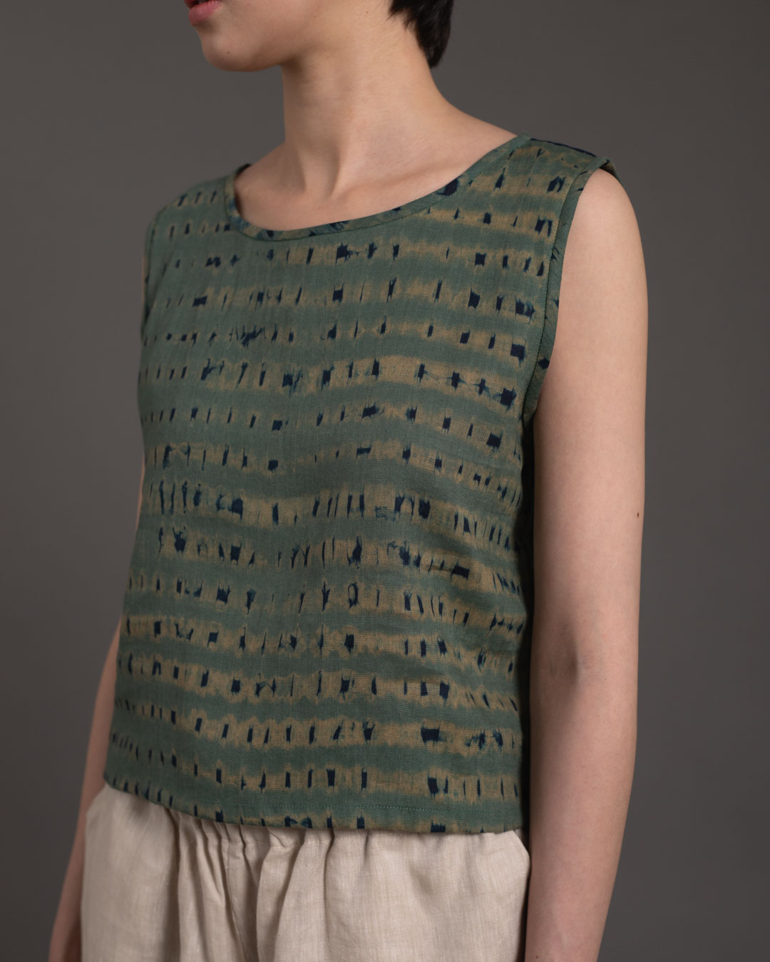 Shibori patterns are distinguished by soft, blurred edges, nuanced details, and subtle shade gradations. The uniqueness of these pieces lies in their countless minute variations. While the designs may initially appear structured, a closer look reveals the presence of human touch in every detail.