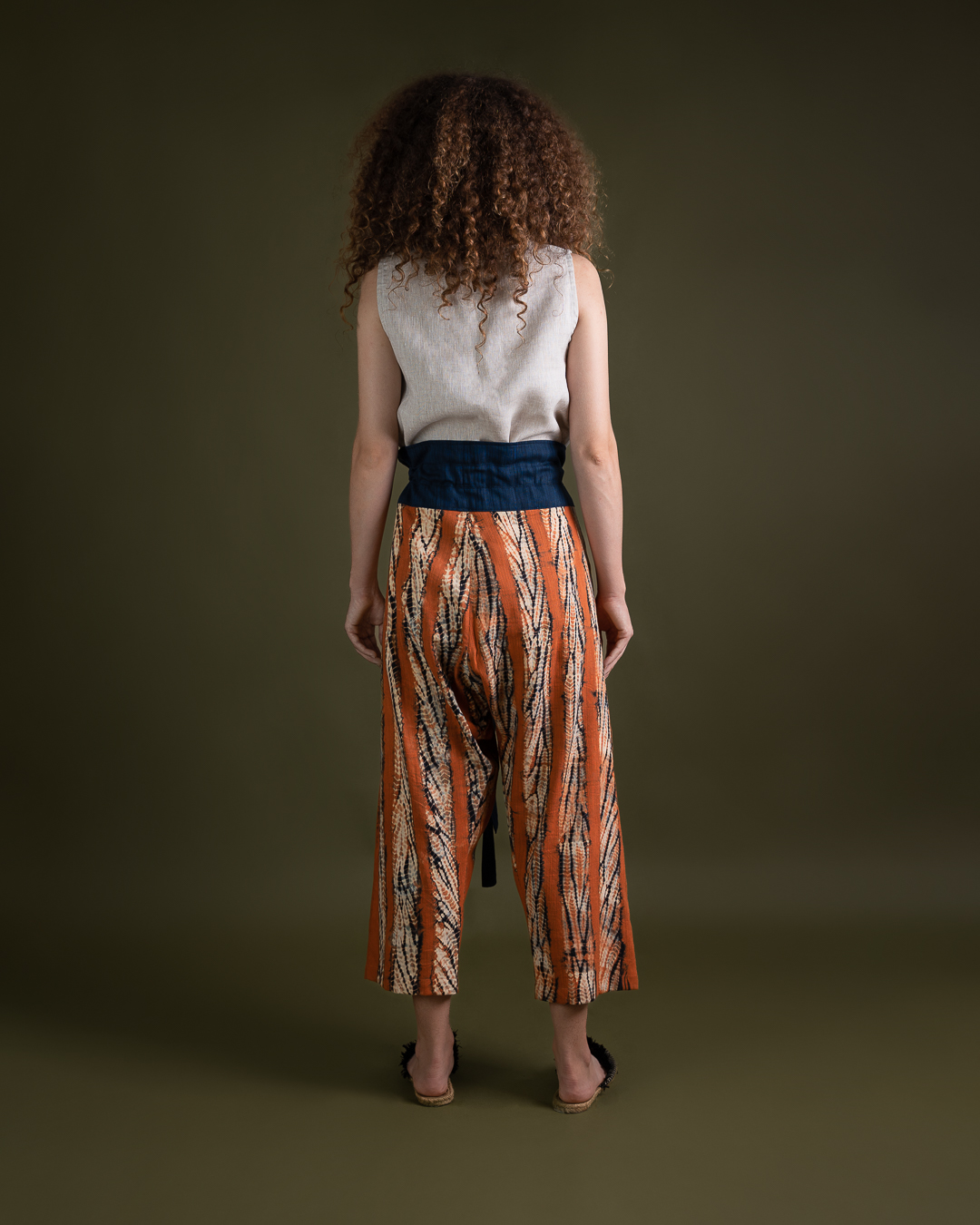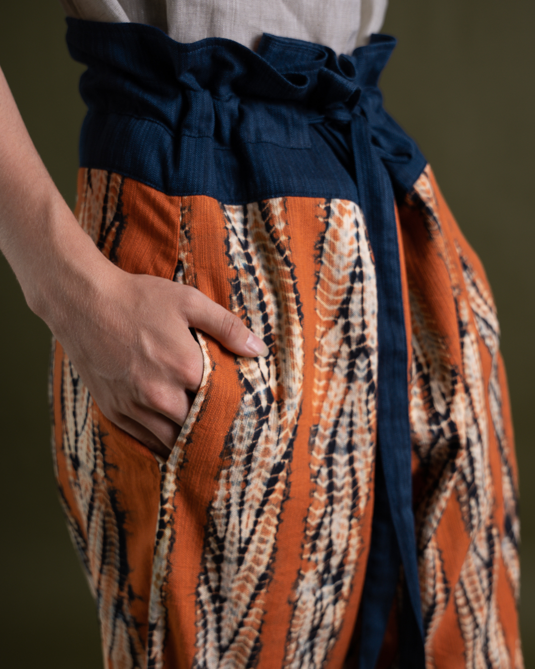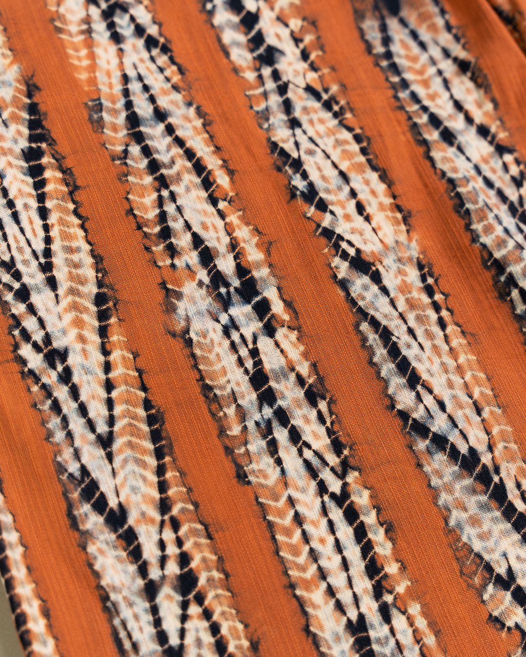 Shibori patterns are distinguished by soft, blurred edges, nuanced details, and subtle shade gradations. The uniqueness of these pieces lies in their countless minute variations. While the designs may initially appear structured, a closer look reveals the presence of human touch in every detail.
